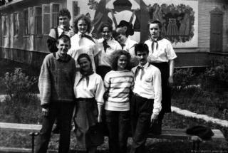 Северный Артек, 1990 год, слева направо, верхний ряд: Виктор Яблунин, Света Деснева, Ира Попова, Наташа Ильина, Таня Морозова; нижний ряд: Александр Гильдебрант, Галя Кокорина, Аня Спицина, Сергей Чуркин.